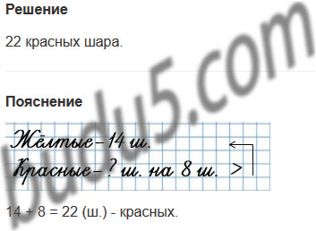 1) На ёлку повесили 14 жёлтых шаров, а красных - на 8 больше. Сколько красных шаров повесили на ёлку?