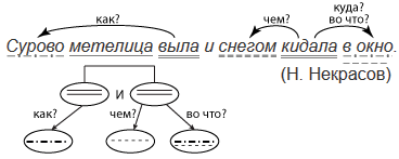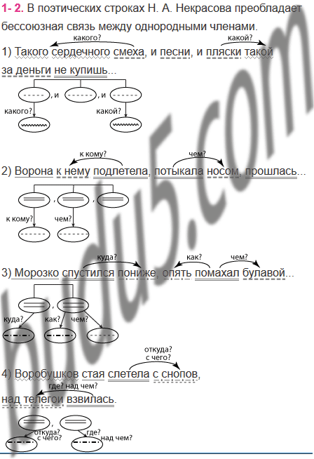 2. Составьте схемы предложений, обозначая однородные члены и зависимые от них слова. Подчеркните остальные члены предложения.