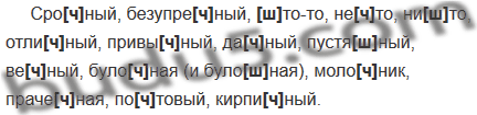 Срочный, безупречный, что-то, нечто, ничто, отличный, привычный, дачный, пустячный, вечный, булочная, молочник, прачечная, почтовый, кирпичный.