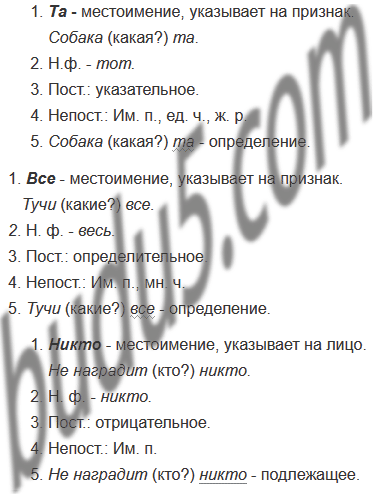Выполните устный и письменный разбор трёх местоимений разных разрядов.