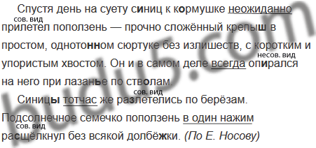 Синиц.. тотчас же (ра..летаться, ра..лететься) по берёзам. Подсолнечное семечко поползень в один нажим (ра..щёлкивать, ра..щёлкнуть) без всякой долбё..ки. (По Е. Носову)