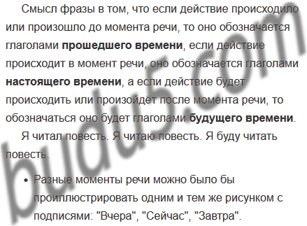 | Прошедшее время (до момента речи) | Настоящее время (в момент речи) | Будущее время (после момента речи) |