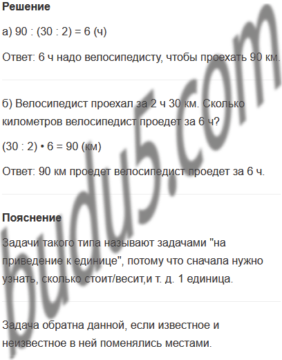 "Велосипедист проехал за 2 часа 30 км. За сколько часов, двигаясь так же, он преодолеет 90 км?"