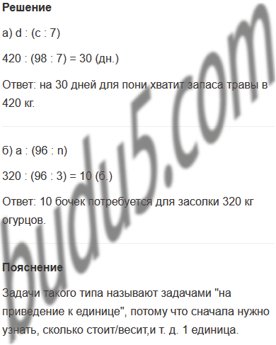 б) В n одинаковых бочек вошло 96 кг огурцов. Сколько таких бочек потребуется для засолки а кг огурцов? (n = 3, а = 320)